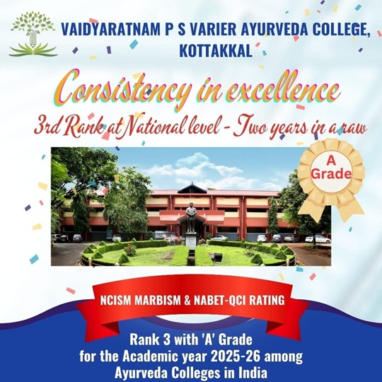 A four years course leading to the diploma ‘Arya Vaidyan’ was conducted. In 1924, the Patasala was shifted to Kottakkal with a view to give practical training to the students in the Arya Vaidya Sala Charitable Hospital. The Arya Vaidyan course was abolished in the year 1958 and ‘Diploma in Ayurvedic Medicine (D.A.M) course was introduced. In 1959, the Aryavaidya Patasala was upgraded as an Ayurveda College. The new course (D.A.M) was of four years duration followed by an internship training of six months. In 1972, the Ayurveda College, Kottakkal was affiliated to the University of Calicut and a new course, Bachelor of Ayurvedic Medicine (B.A.M), was started. |